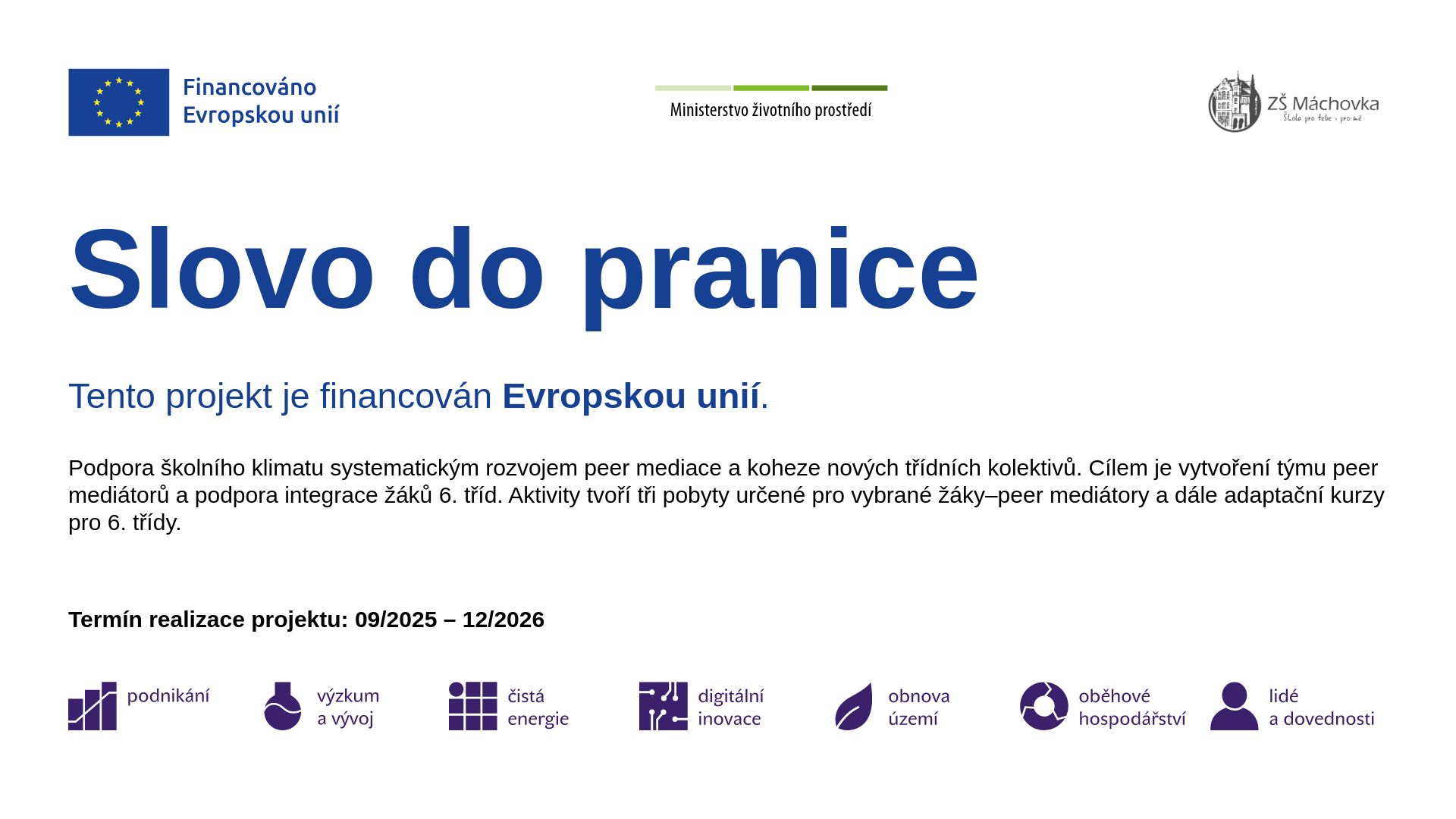 Za účelem realizace předloženého projektu HLEDÁME SLOVO DO PRANICE byla naší škole schválena dotace na zvyšování doborných znalostí pedagogických pracovníků v oblasti prevence rizikového chování žáků a duševního zdraví a realizace programů specifické primární prevence rizikového chování a podpory duševního zdraví žáků. Ústecký kraj ze svého rozpočtu schválil poskytnutí neinvestiční dotace ve výši 200 000 Kč na úhradu workshopů pro žáky a studia k výkonu specializované činnosti.