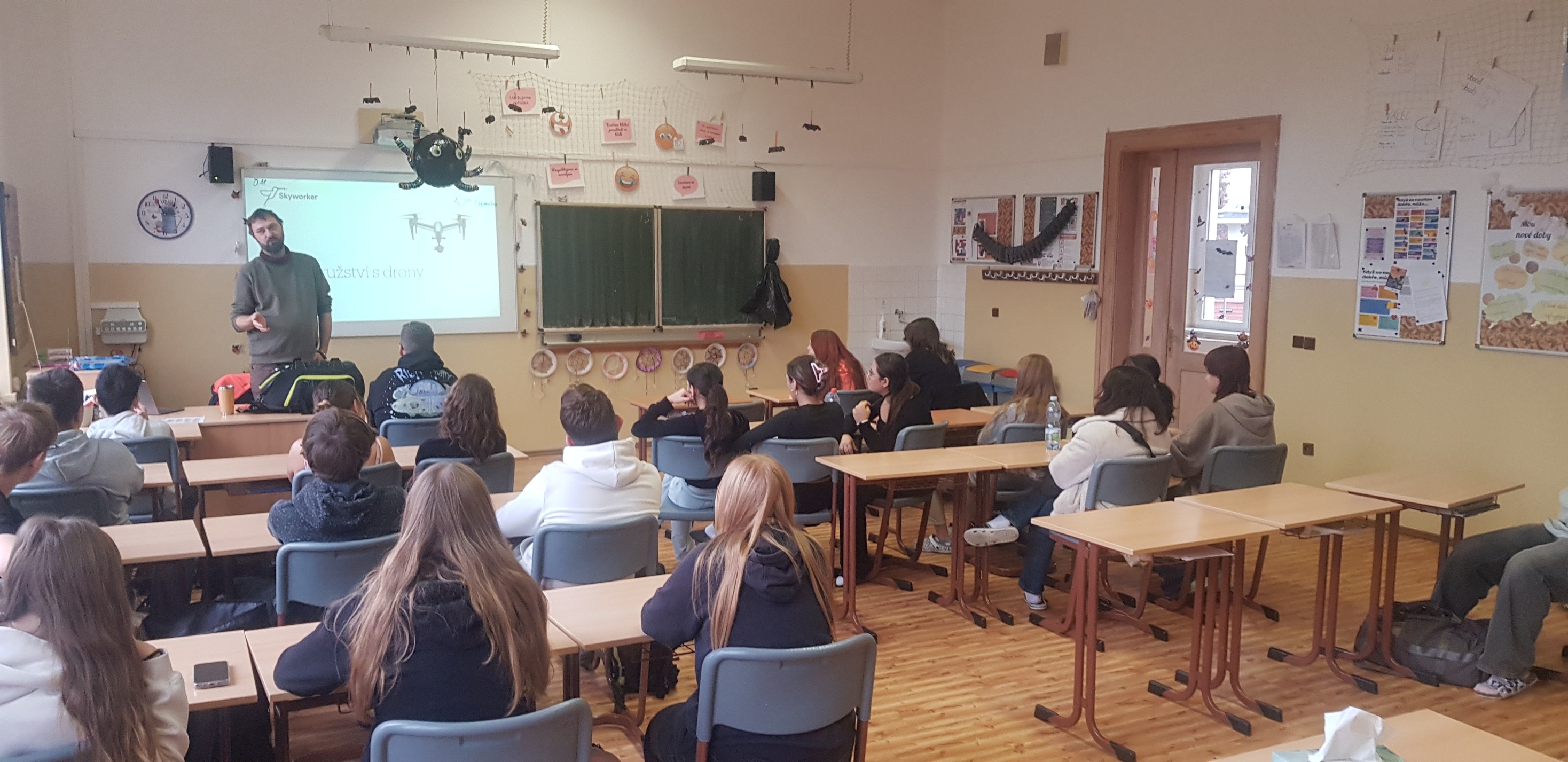 Žáci mediální výchovy z devátých tříd se zúčastnili zajímavé besedy s profesionálním pilotem dronů. Dozvěděli se, jak se s drony létá, k čemu se používají i jaké jsou první kroky v této profesi. Nechyběla ani ukázka dronu v akci.
