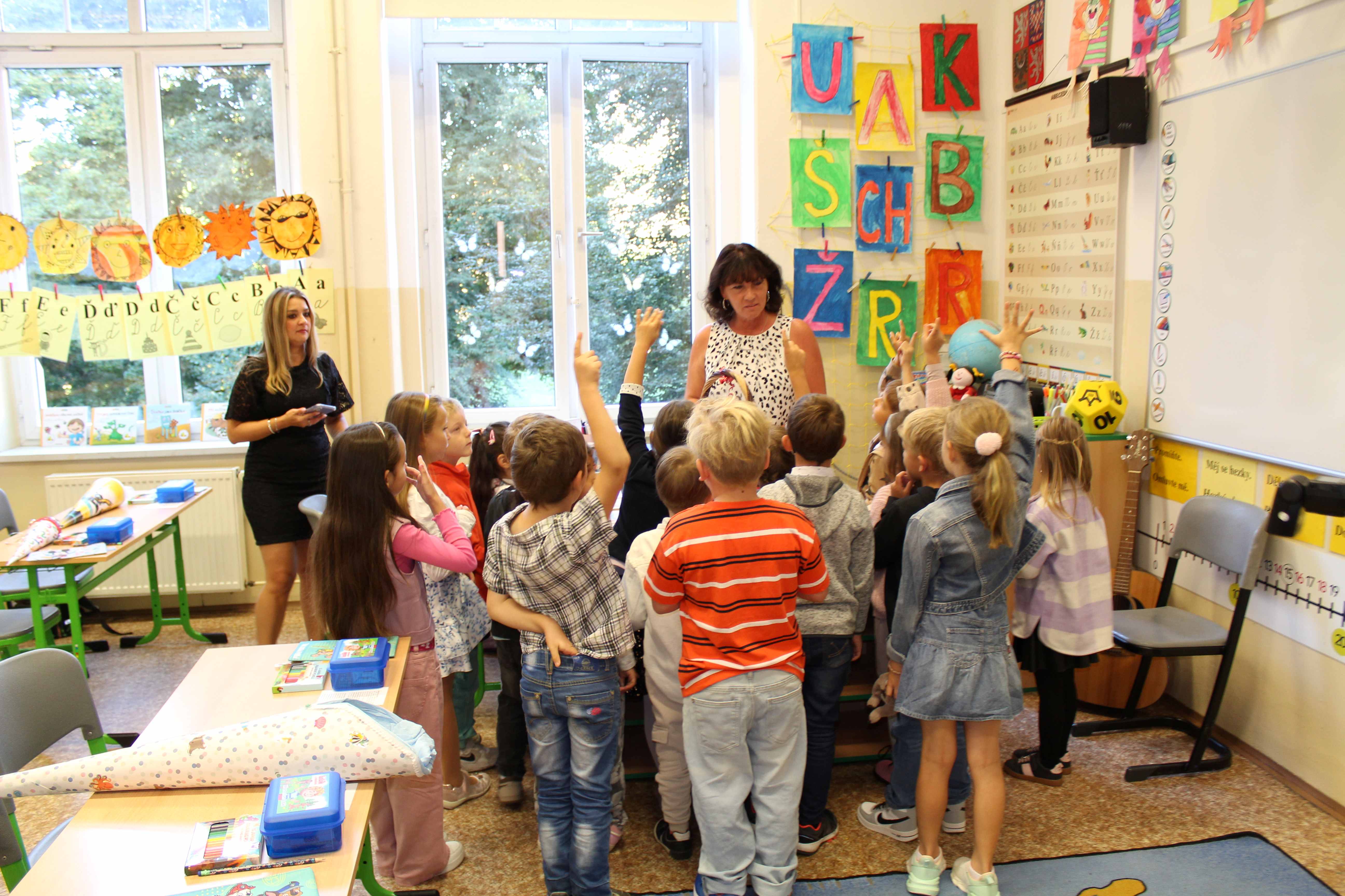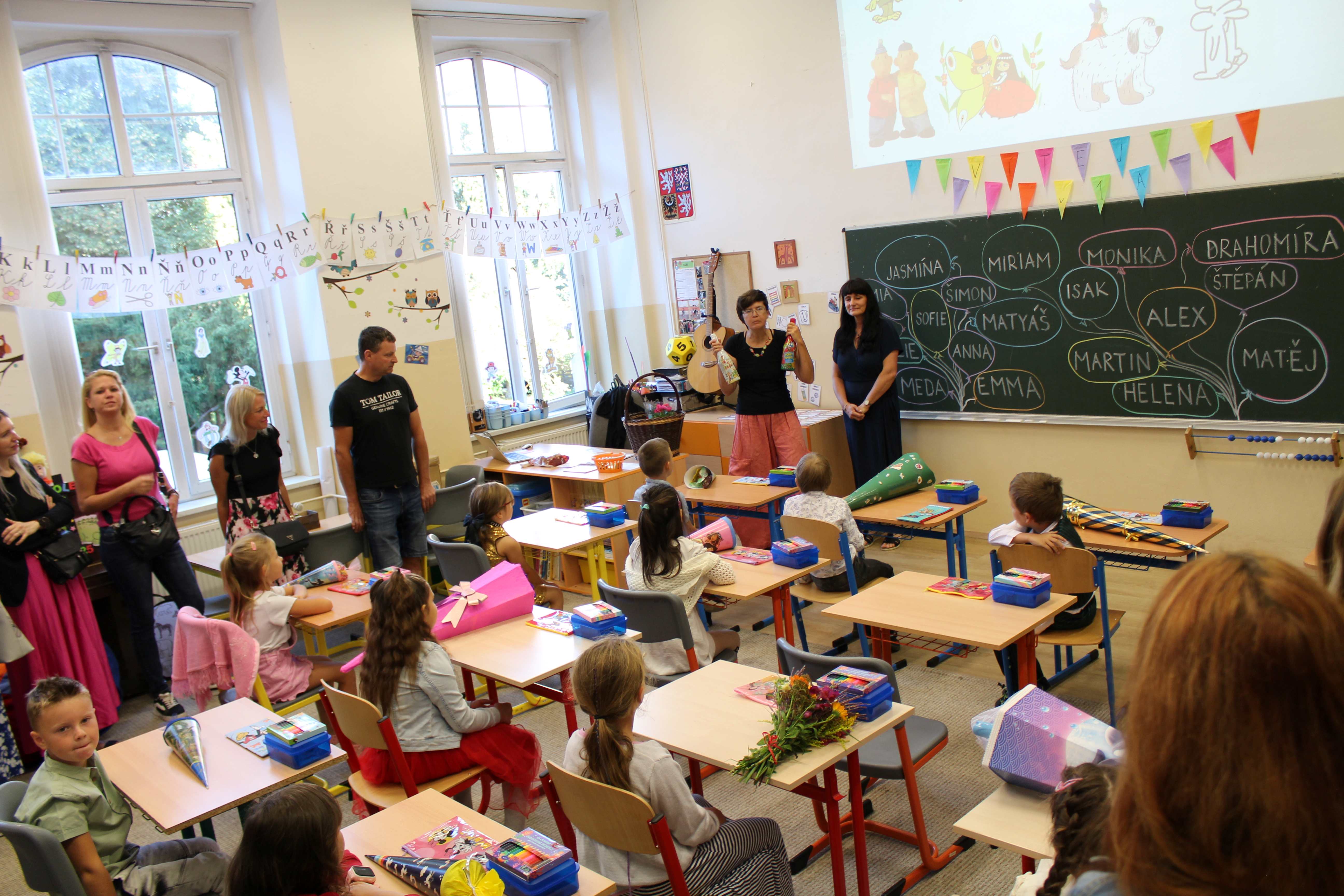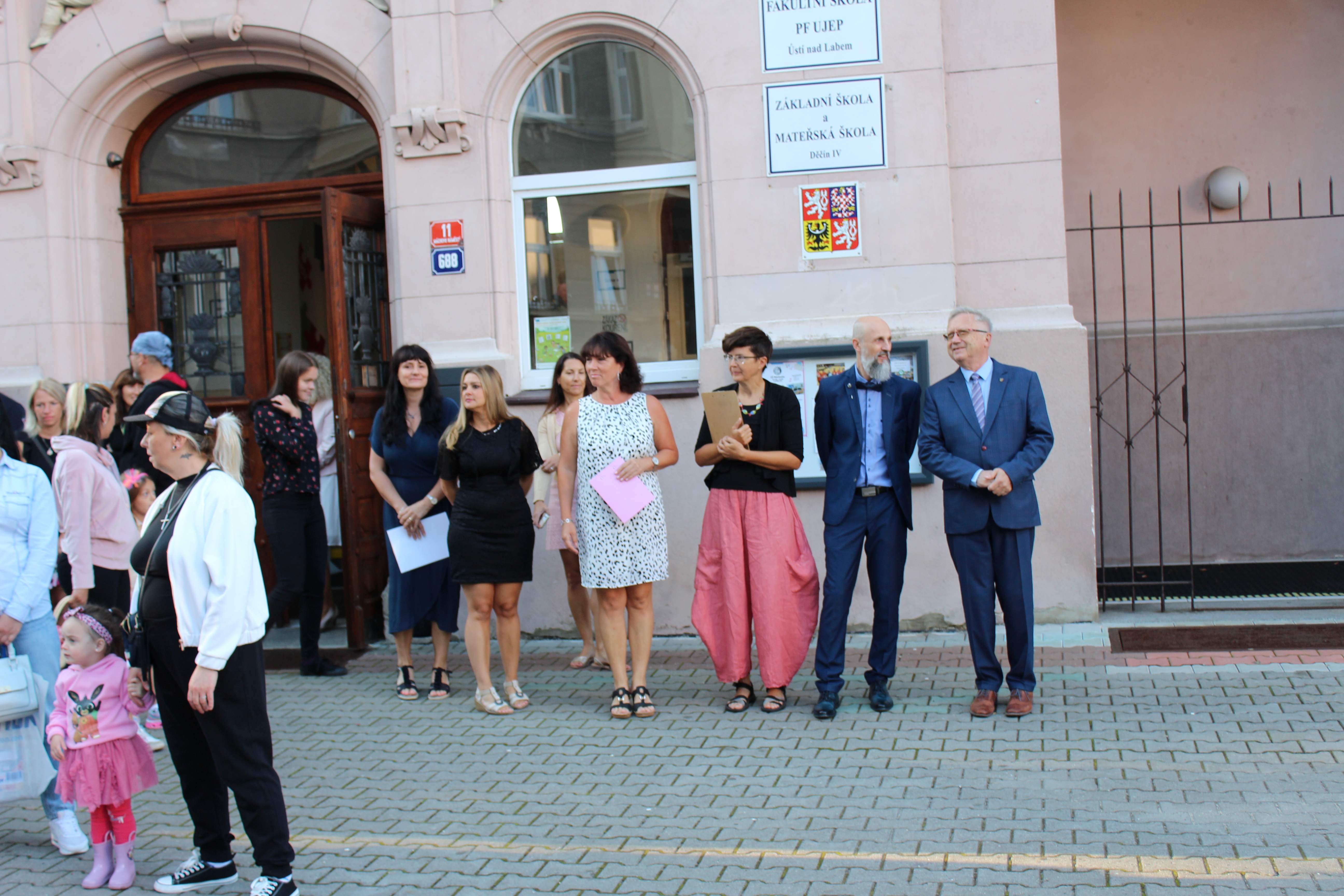 Konec prázdnin zaklepal na dveře a dnes 1. září se před budovou naší krásné školy shromáždila kupa natěšených prvňáčků a jejich pyšní rodiče a prarodiče. Malé školáky přišel přivítat primátor města Děčín Ing. Jiří Anděl, ředitel naší školy Mgr. Martin Lána a zástupkyně školy Mgr. Linda Řešátková. Na malé školáky čekaly samozřejmě také jejich nové třídní učitelky Mgr. Monika Kociánová a Mgr. Šárka Michálková, které se na ně velmi těšily. Po úvodních slavnostních slovech se všechny děti vydaly se svými učitelkami do budovy školy, aby si prohlédly krásně nazdobené třídy a náležitě se v nich zabydlely. My přejeme všem prvňáčkům, aby se jim v naší škole líbilo a aby zde prožili plno krásných chvil plných her, zábavy, učení a objevování nových věcí!